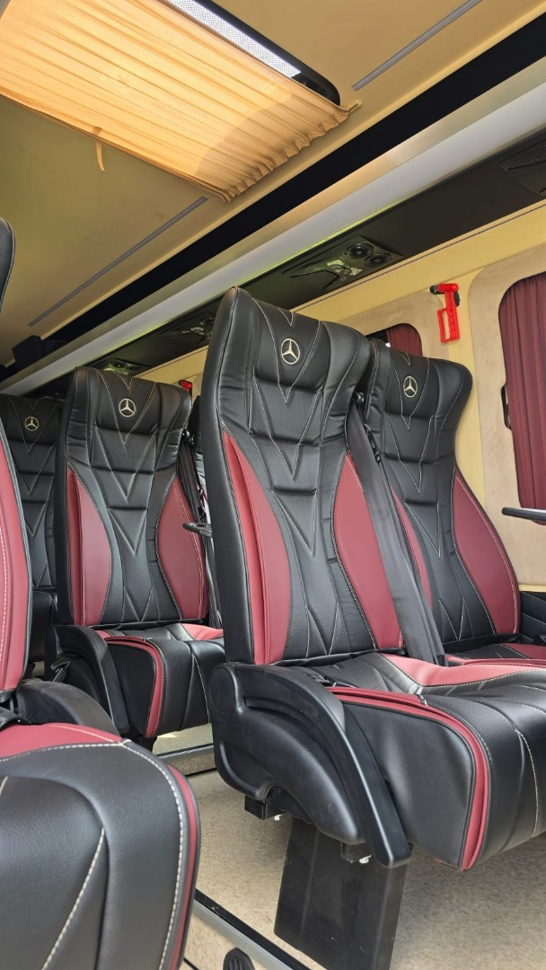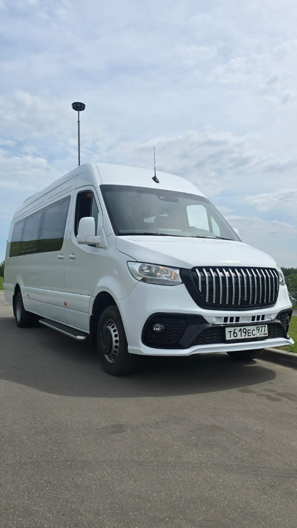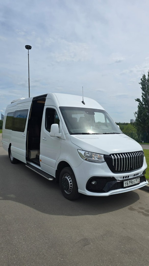 Аренда Mercedes-Benz Sprinter 2025 г. выпуска, цвет белый, 19 мест, вода, зонты, wi-fi.