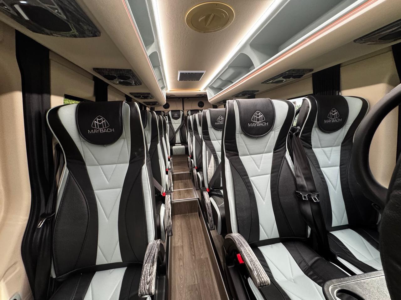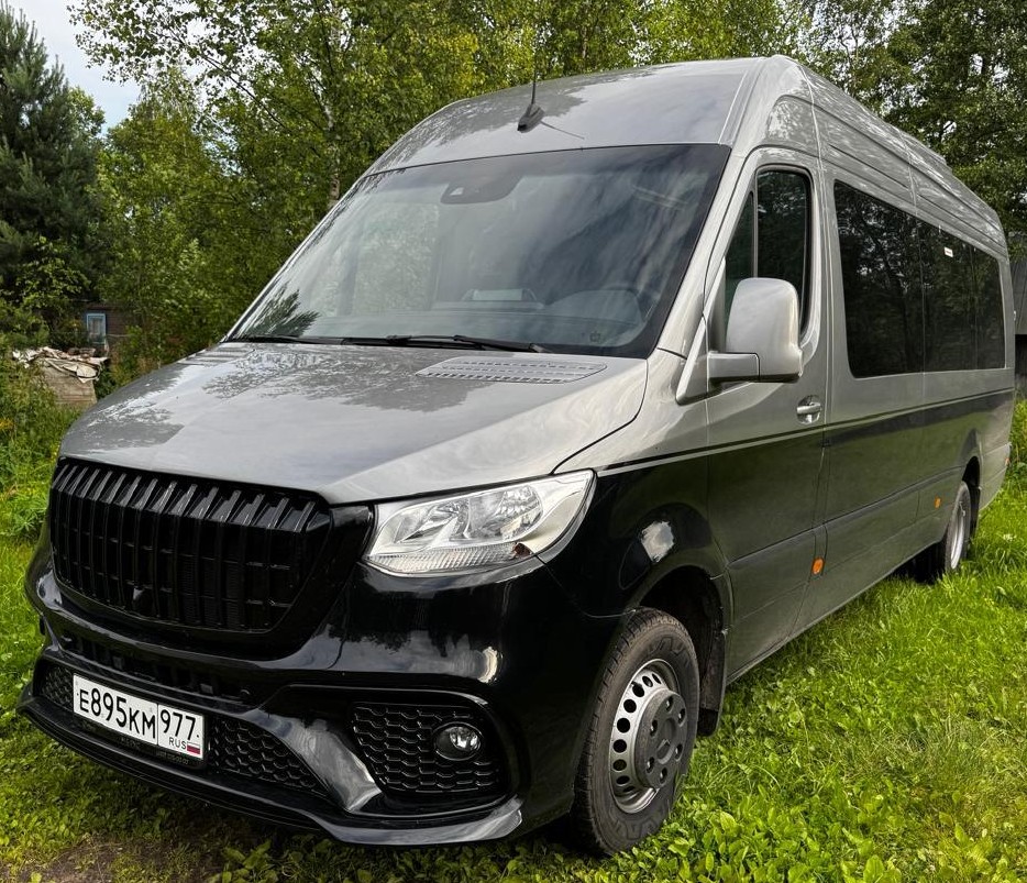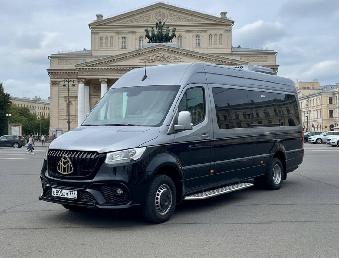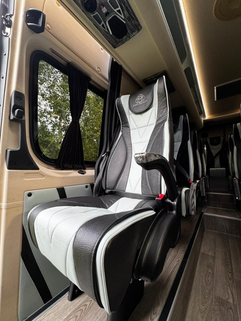Цвет серебристо\черный металлик, салон кожа алькантара, 19 мест, вода, зонты, wi-fi.